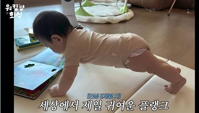 또한 이은형은 아들의 운동신경에 대한 화제가 나오자 “현조가 잘 안 기었다. 근데 어느 날 동화책을 읽어주고 있었는데 아기가 플랭크 동작을 하고 있는 거다. 발가락으로 (무게를) 견디며 플랭크를 하고 있어서 깜짝 놀랐다. 그래서 보통이 아니겠구나 생각했다”라며 증거 사진을 공개하며 현장을 초토화시켰다. 그러면서 남편 강재준이 체대를 나왔다며 “(남편이 아닌)내 운동신경을 닮을까봐 내가 엄청 힘들었다”라고 조마조마했던 엄마 마음을 드러냈다.