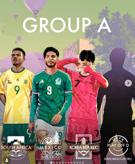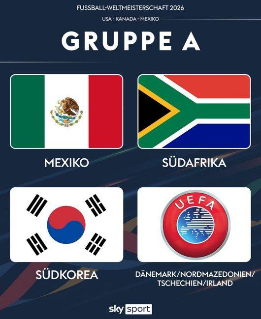 한국은 A조에 배정되면서 공동 개최국 멕시코, 남아프리카공화국, 그리고 덴마크·북마케도니아·체코·아일랜드 중 한 팀이 될 유럽 예선 플레이오프 D 승자와 함께 묶이게 됐다.