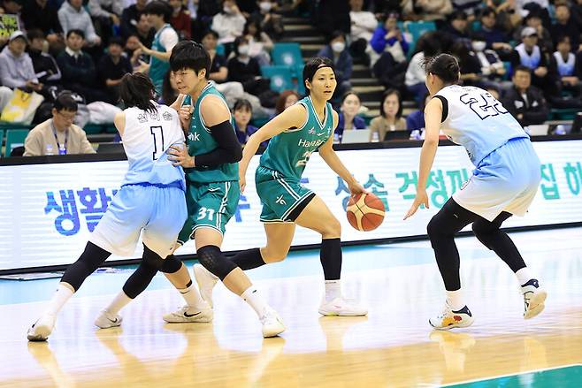 하나은행은 신한은행의 미드레인지 게임에 연이어 점수를 내줬다.