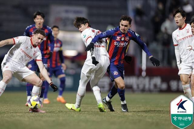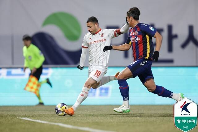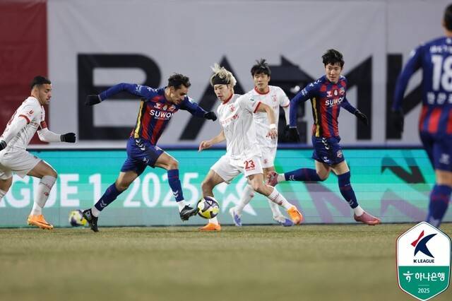 수원 FC는 악재가 계속됐다. 두 골을 먼저 내줘 0-3으로 몰린 수원 FC는 센터백 김태한이 부상으로 빠졌다. 최규백이 김태한을 대신해 그라운드를 밟았다. 전반 35분엔 부천의 스트라이커 몬타뇨가 힘이 잔뜩 실린 슛으로 수원 FC의 골대를 때렸다.