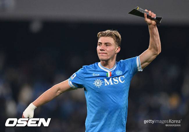 나폴리는 호일룬 영입에 철저한 계획을 세웠다. 임대료 600만 유로(약 102억 원)에 데려왔고, 시즌 종료 후 4400만 유로(약 752억 원)의 완전 영입 옵션을 보유하고 있다. 여기에 중요한 조건이 있다. 나폴리가 이번 시즌 챔피언스리그 진출 티켓을 확보하면 이 옵션은 ‘의무 영입 조항’으로 전환된다.
