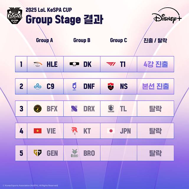 한화생명-DK-T1이 케스파 컵 조 1위로 4강 토너먼트에 진출했다.