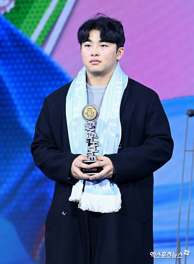 또 "내년에도 이 상(타자상)을 받아서 (시상식이 열리는 극장) 스크린에 한화가 우승 트로피를 드는 모습을 드는 장면을 꼭 보여드리고 싶다"고 강조했다.