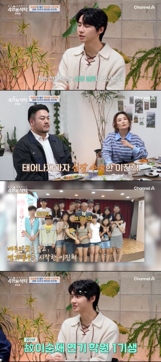 '절친 토큐멘터리 – 4인용식탁' 가수 겸 배우 이진혁이 선천적인 심장 판막 이상을 앓았으며, 태어나자마자 큰 수술을 받았다는 사실을 고백했다.