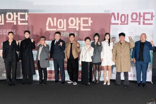 이날 제작보고회에는 김형협 감독을 필두로 주연 박시후, 정진운을 비롯해 태항호, 한정완, 장지건, 고혜진, 서동원, 최선자, 문경민, 남태훈, 강승완, 신한결 등 총 12명의 배우가 무대를 가득 채우며, 영화 속 ‘악단’처럼 완벽한 앙상블을 과시했다. 보통 4~5명의 배우가 참석하는 일반적인 행사와 달리, 13명의 주역들이 한자리에 모인 장관은 '신의악단'이 보여줄 압도적인 캐릭터 플레이와 팀워크를 예고하기에 충분했다.