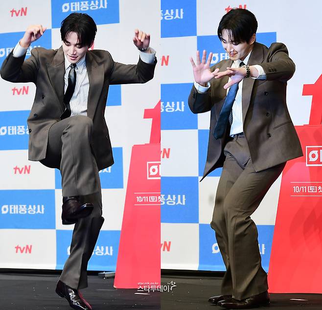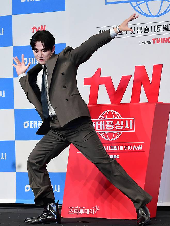 지난 10월 1일 진행된 드라마 ‘태풍상사’ 제작발표회에 참석한 이준호가 화려한 댄스 퍼포먼스로 눈길을 끌었다. 드라마 콘셉트에 맞게 복고풍 슈트 차림으로 포토타임에 나선 이준호는 드라마 대박 시청률을 예감한 듯 다양한 하트 포즈와 자신감 넘치는 모습으로 취재진 앞에 나섰다.