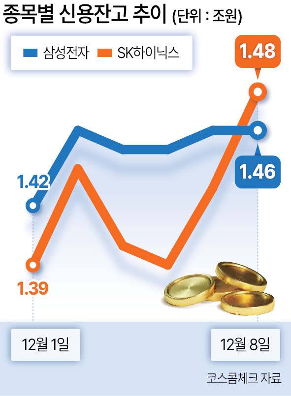 SK하이닉스의 신용거래융자 잔고 규모가 최근 폭발적으로 증가, 삼성전자를 뛰어넘었다.