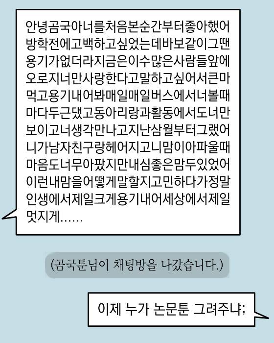 [편집자주] 논문을 거꾸로 읽으면 '곰국'입니다. 전 세계 최초 웹툰형 기사인 '곰국요정 상담소'는 과학기술분야 연재 콘텐츠 '3분 곰국'을 바탕으로 재구성했습니다. 의문의 캐릭터 '곰국요정'이 온라인 상담 게시판에 남긴 누리꾼의 고민을 과학기술 논문을 기반으로 해결해주는 에피소드형 웹툰입니다. 매주 인스타그램(@gomgooki)에서도 만나보세요.