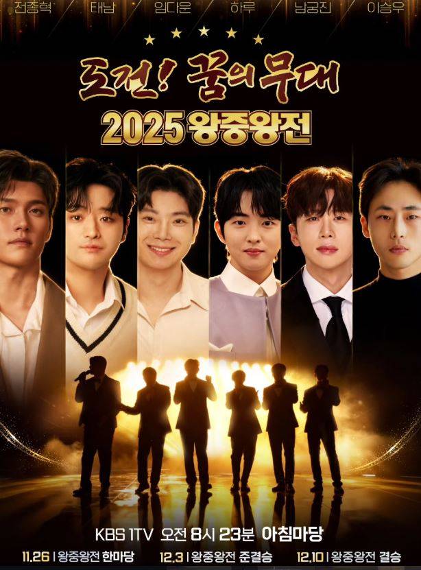 (MHN 정에스더 기자) 거대 팬덤을 등에 업은 전종혁, 남궁진일까. 무서운 신예 하루일까. '아침마당 - 도전! 꿈의 무대 2025 왕중왕전'이 마침내 펼쳐진다.