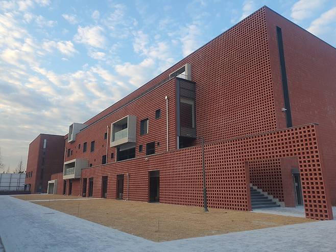 이를 위해 건물의 입면 마감재로 Q블록을 사용한 게 특징이다. Q블록은 육면체 블록의 가운데가 뚫려 있는 마감재다. 그리고 이 뚫린 공간을 담쟁이덩굴로 채우는 계획을 세웠다. Q블록의 색상도 나무와 유사한 갈색을 사용했다. 이를 통해 그린 파사드를 구현하겠다는 것이다. 단순히 녹색만 채운 게 아니라 입면이 가장 돌출된 부분부터 뒤편까지 총 3개의 불규칙한 레이어로 구성돼 자연스러움을 더했다. 건물 옥상에도 옥상정원을 마련해 땅에서 봐도 공중에서 봐도 녹색이 보여 공원과 어우러지는 경관을 완성한다.