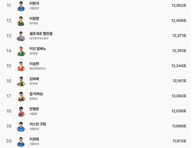 그렇지만, 지난 3시즌보다 더 많은 선수들이 더 많은 팬들에게 표를 얻고 있다는 건 그만큼 KBL 무대에서 빼놓을 수 없는 선수들로 자리잡았다는 걸 보여준다.