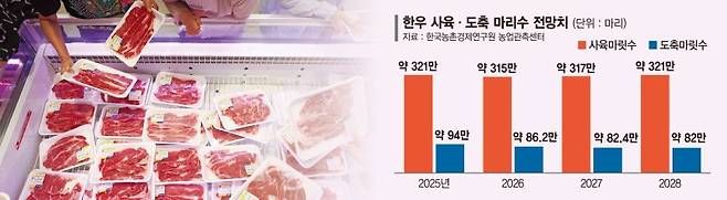 한국농촌경제연구원 관계자는 "거세우 출하 가능 개체수가 감소한 영향"이라며 "오는 2028년까지 거세우 출하 가능 마릿수 감소에 따른 도축 마릿수 감소세는 이어질 것"이라고 내다봤다.