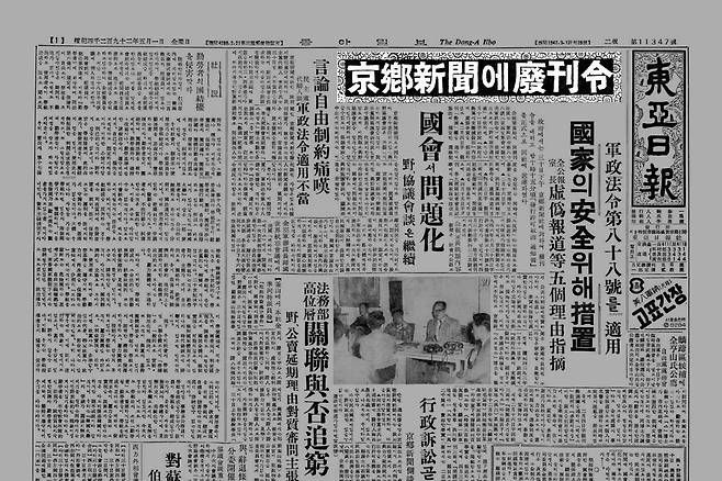 폐간처분의 근거는 대한민국정부에 의해 효력이 인정된 미군정청 군정법령 제88호다. 이승만 정권은 <경향신문>이 이 법령 제4조의 허가취소 요건에 해당한다고 주장했다. 그런데 폐간처분에 대한 취소청구소송을 맡은 재판부는 그렇게 생각하지 않았다. 서울고등법원 특별1부는 6월 26일 경향신문사의 손을 들어줬다.