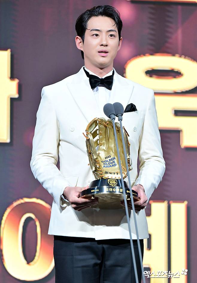 구자욱은 9일 서울 송파구 롯데호텔 월드 크리스탈 볼룸에서 열린 2025 KBO 골든글러브 시상식 외야수 부문 골든글러브 수상자로 발표됐다. 총 316표 가운데 217표(득표율 68.7%)를 득표했다.