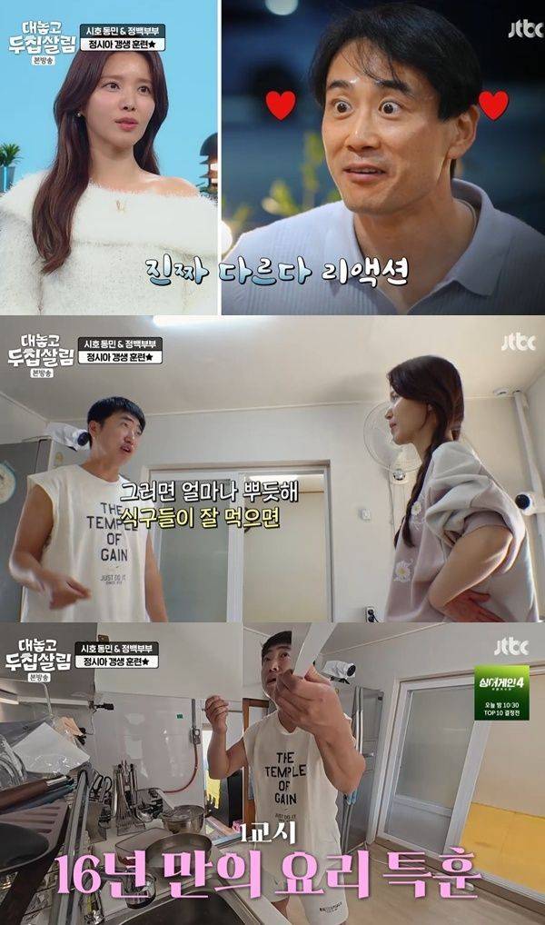 9일 방송된 JTBC '대놓고 두집살림'에서 장동민, 정시아가 요리 특훈에 나섰다.