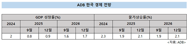 ADB는 부동산 시장 침체와 글로벌 무역·지정학적 긴장 재확산 가능성을 여전한 한국 경제의 하방 리스크라고 지목됐다.
