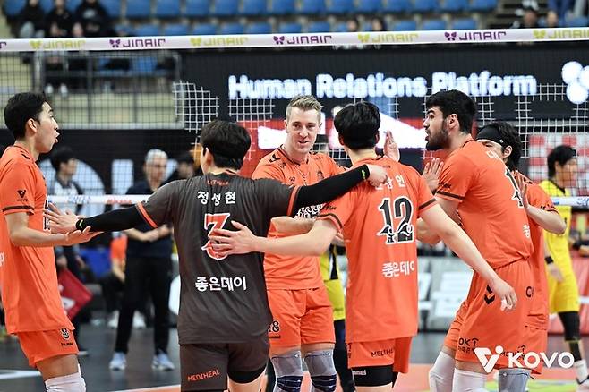 디미트로프가 27득점, 차지환 22득점, 전광인 13득점 박창성과 오데이가 각각 11득점 10득점을 만들며 팀 승리를 합작했다. KB손해보험은 비예나가 23득점, 임성진 11득점, 야쿱 10득점했지만 팀 패배를 막을 수 없었다.