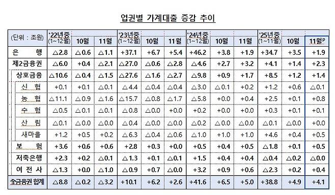 다만 새마을금고, 신협 등 2금융권으로 풍선효과가 났다. 2금융권 주담대는 10월에 1조2000억원에서 11월에는 1조9000억원으로 늘었다. 이에 따라 2금융권 가계대출은 같은 기간 1조4000억원에서 2조3000억원으로 증가폭이 확대됐다. 은행권은 같은 기간 가계대출이 3조5000억원에서 1조9000억원으로 줄었다.