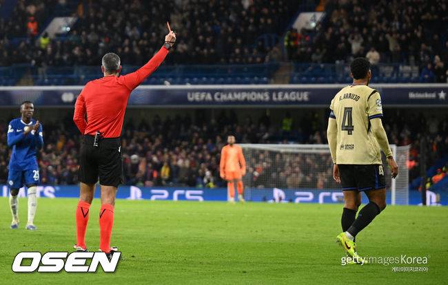 아라우호는 지난달 26일 열린 2025-2026시즌 유럽축구연맹(UEFA) 챔피언스리그(UCL) 리그 페이즈 첼시전에서 퇴장당했다. 선발 출전한 그는 전반 32분 과도한 항의로 첫 옐로카드를 받았고, 전반 막판 거친 태클로 두 번째 옐로카드를 받으며 경기장을 떠났다. 10명이 된 바르셀로나는 0-3으로 패했다.