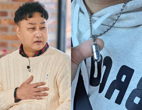 사진에는 임형준의 이름이 각인된 약 보관 목걸이가 담겨 있다. 약 보관 목걸이는 과거 변이형 협심증을 앓았던 그가 혹시 모를 상황에 대비해 갖고 다니는 응급약을 보관하는 용도.