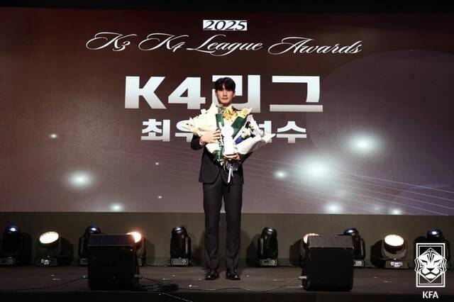 대한축구협회가 10일 오후 2시 서울 강서구 메이필드호텔 그랜드볼룸에서 '2025 K3·K4리그 어워즈'를 개최하고 올 시즌을 빛낸 선수 및 구단을 시상했다. K3리그에서는 포천시민축구단의 이재건, K4리그에서는 당진시민축구단의 신재욱이 각각 최우수선수상(MVP)의 영예를 안았다.