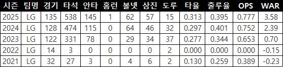 | ▲ LG 신민재의 주요 타격기록(출처: 야구기록실 kbreport) |