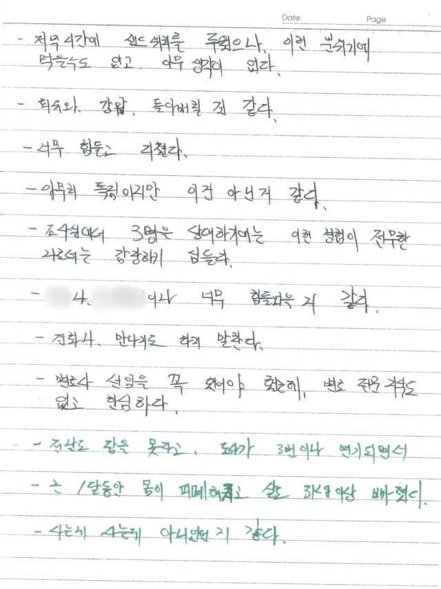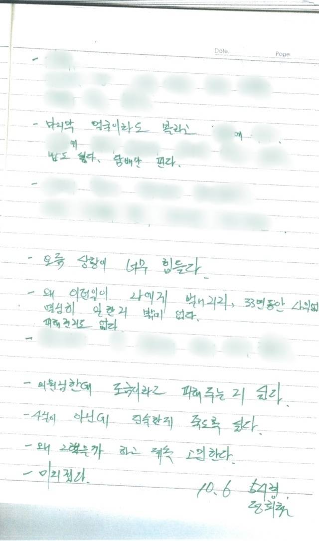 경기일보는 단독 입수한 유서 중 일부를 공개한다. 고인의 명예와 가족과 관련된 내용, 개인 정보 등을 제외했다.