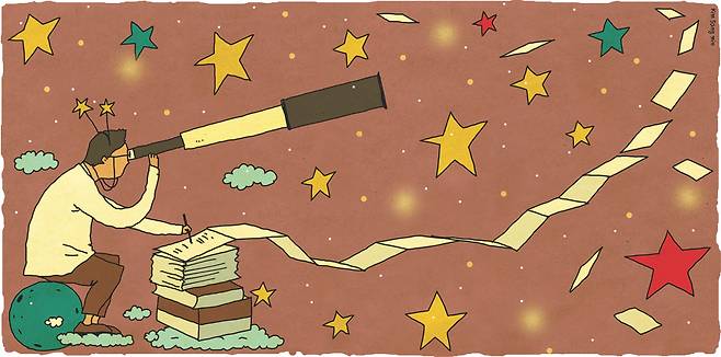 하지만 천문학자들은 오랫동안 몸에 밴 습관 때문인지, 천문대에서 관측을 하지 않아도 연구실에 홀로 앉아 별빛 아래 작업을 하는 때가 많다. 결국 천문학자들이 쓴 모든 논문과 글은 그들의 가장 감성적인 순간의 이야기가 되어버린다. 나도 그간 발표했던 모든 논문의 텍스트 상당수는 낮이 아닌 밤에 작성했던 것 같다. 천문학자의 이야기는 사실상 새벽 감성이 가득 담긴 잡문에 가깝다. 그러니 우리의 이야기들이 다른 사람들에게 유독 로맨틱하고 감성적으로 느껴졌던 게 아닐까. 심지어 있지도 않은 이야기까지 덧씌우고 기대를 할 정도로 말이다.