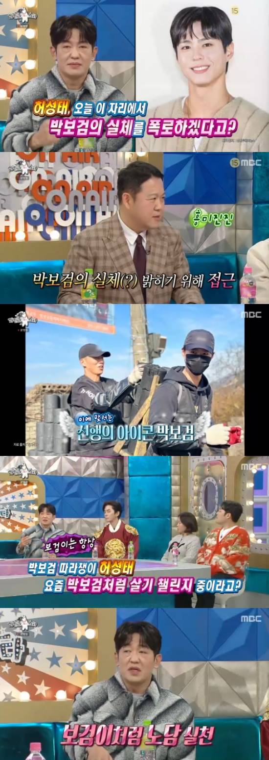 이를 들은 김구라는 "박보검 출연료 봤느냐"고 돌직구를 던져 큰웃음을 줬다. 특히 허성태는 '박보검처럼 살기' 챌린지를 한다면서 "보검이를 따라서 5개월동안 담배를 끊었었다"고 말해 웃음을 자아냈다.