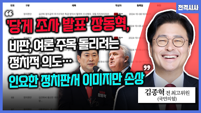김종혁 국민의힘 전 최고위원 - “‘당게 조사 발표’ 장동혁 비판 여론 주목 돌리려는 정치적 의도…인요한 정치판서 이미지만 손상”