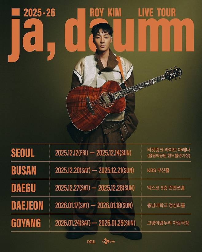 로이킴은 오는 12일부터 14일까지 3일간 서울 송파구 올림픽공원 티켓링크 라이브 아레나(핸드볼경기장)에서 ‘2025-26 로이킴 LIVE TOUR [ja, daumm]’ 서울 공연을 시작한다. 이후 부산, 대구, 대전, 고양 등 전국 각지에서 팬들과 훈훈한 연말연초 감성을 나눌 예정이다. thunder@sportsseoul.com