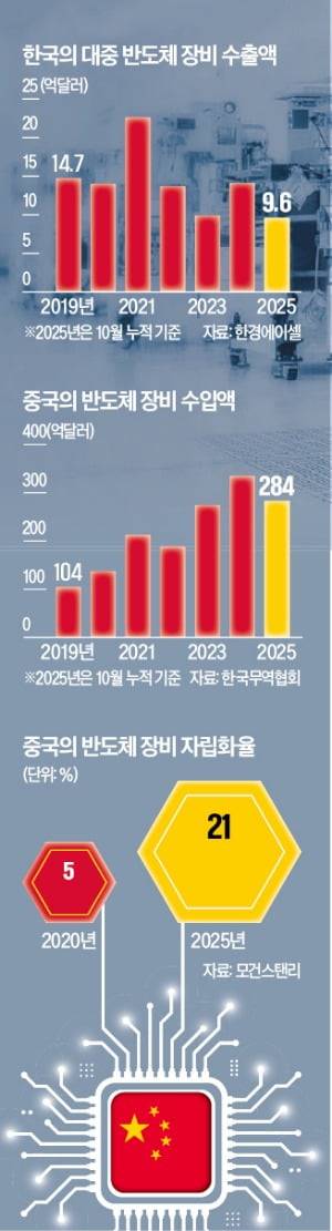 업계에선 한국 반도체 장비 산업의 위기는 이제부터 시작이라는 우려가 나온다. 중국 정부는 2014년부터 두 차례에 걸쳐 3390억위안(약 70조원) 규모의 국가집적회로산업투자기금(빅펀드)을 조성해 반도체 생태계 전반에 투자해왔다. 지난해엔 3400억위안 규모 3차 펀드를 조성했다.