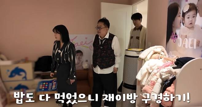 식사 후엔 다 함께 재이 양의 방을 구경했다. 파스텔 톤 핑크로 감싸진 공간은 포근함과 따뜻함을 느낄 수 있었고, 각종 아기 장난감이 어지러이 놓여 있었다. 특히 방 한쪽에 자리한 거대한 서재를 보고 이용식은 “여기가 도서관이지 방이냐”라며 감탄했다. 박수홍의 아내 김다예는 주변을 살피던 중 "재이가 발이 커져서 신을 수 없다"라며 작아진 신발을 주겠다고 했고, 턱받이·옷 등도 가져가라고 말했다. 이에 원혁은 “이제 그만 찾으셔도 된다”라며 미안함을 표했는데 옆에 있던 이수민이 “가만히 있어”라고 눈치를 줘 주변을 폭소케 했다.