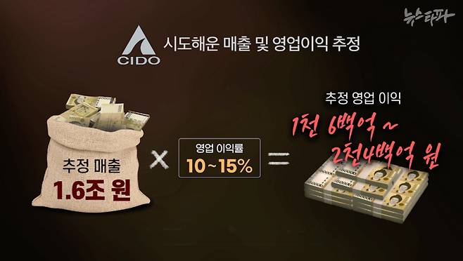 뉴스타파가 배의 종류와 규모에 따른 용선료를 대입해 계산해보니, 시도해운 소속 배들이 벌어들이는 수입은 호황기 기준 하루 약 70억 원, 비수기 기준 하루 20억 원 정도로 추정됐다. 평균 45억 원으로 가정하고 1년으로 환산하면 매출이 1조 6,000억 원 가량, 국내 해운회사들의 통상적인 영업 이익률이 10~15% 정도라는 걸 감안하면 영업이익이 1,600억 원에서 2,400억 원 정도로 추정된다. 물론 이는 용선료만을 가지고 추정한 매출이기 때문에 실제로 시도해운의 매출과 영업이익은 이보다 더 클 가능성이 있다. 뉴스타파는 권혁 회장과 시도해운 측에 정확한 매출과 영업 이익 규모에 대해 확인을 요청했지만 답변을 받지 못했다.