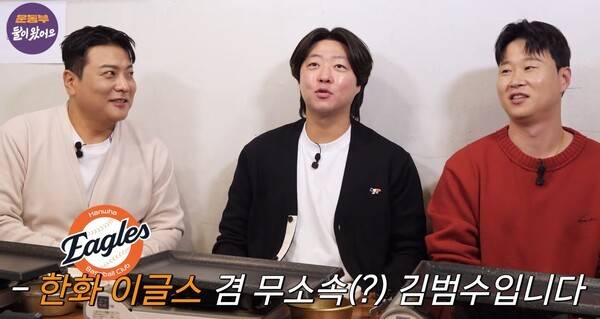 김범수는 먼저 "안녕하세요. 한화 이글스 겸 무소속 김범수입니다"라고 자신을 소개하며, 현재 무소속 신분임을 강조했다.