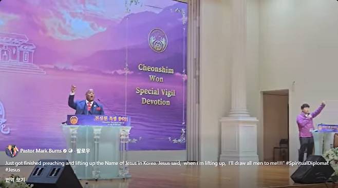 미국 보수 성향 복음주의권 목사이자 트럼프 미국 대통령 측근으로도 알려진 마크 번스 목사가 지난 3일 자신의 SNS에 올린 영상입니다.