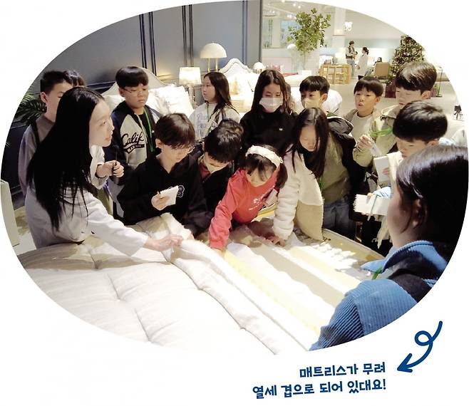 주니어 생글 기자들은 매트리스 성능을 시험하는 곳과 수면 환경 연구소, 침대 공장을 차례로 둘러봤다. 박물관을 관람하며 시몬스의 155년 역사를 배우고, 전시 공간에서 침대에 누워 보기도 하며 품질을 체험했다.