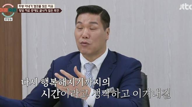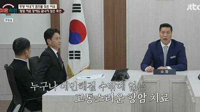 11일 JTBC '이혼숙려캠프‘에선 투병 아내가 캠프를 찾은 이유를 공개됐다. 항암 치료 중에도 남편의 폭언 때문에 괴로워했던 아내의 사연이 공개됐다.