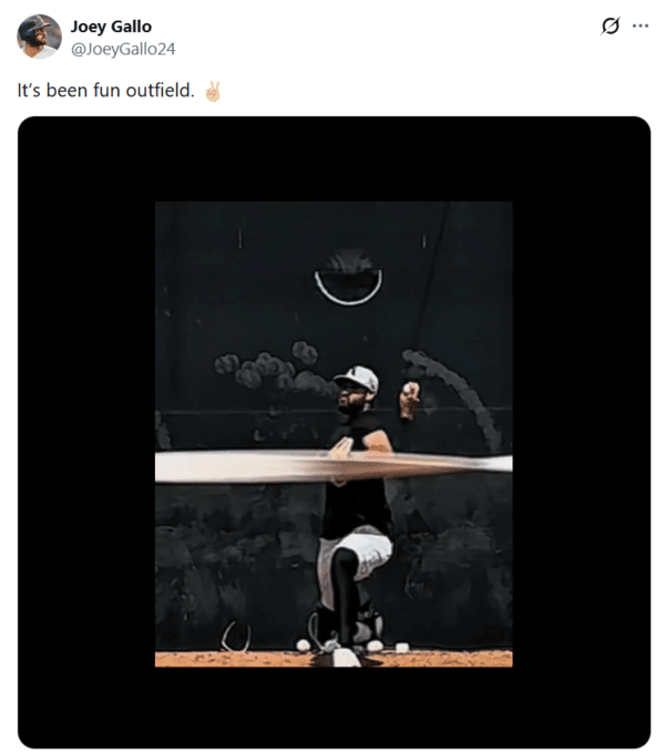 투수로 전향해 제2의 야구 인생에 도전하는 조이 갈로의 재취업에 파란 불이 켜진 것으로 보인다.