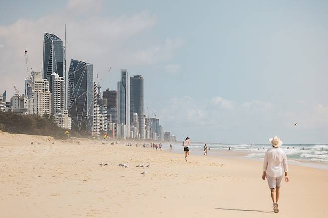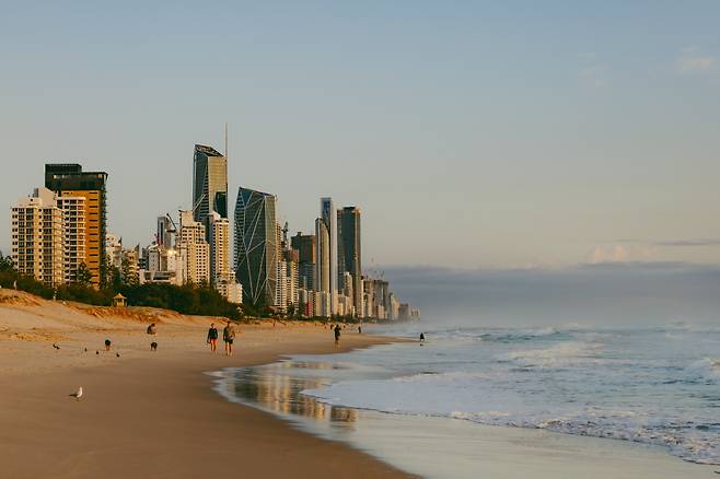 이름에 드러나듯 골드코스트는 황금빛 모래와 햇빛을 머금은 해안 도시다. 브리즈번 남쪽으로 길게 뻗은 70km 해안선을 따라 바다와 호흡하고, 느긋한 분위기와 감각적인 문화가 꽃을 피운 도심을 여행할 수 있다. 연중 맑은 날이 많은 편이라, 여행하기 좋은 날씨를 만날 확률도 높다. 이곳에서의 여정은 이른 아침부터 시작했으면 한다. 오전 4시30~50분, 해가 뜨는 시간에 맞춰 해변으로 나가 현지인과 함께 뛰고, 활기찬 분위기의 로컬 카페에 모여 커피를 마시며 하루를 깨운다. 햇살이 쏟아지는 오후엔 부드럽게 부서지는 파도에 몸을 맡기거나 남반구에서 가장 긴 롤러코스터를 타고 짜릿한 기분을 만끽하면 된다. 그렇게 자연스레 골드코스트의 리듬에 녹아든다.