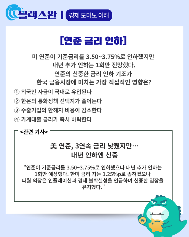▶기사 바로가기: 美 연준, 3연속 금리 낮췄지만···내년 인하엔 신중