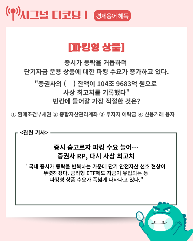▶기사 바로가기:증시 숨고르자 파킹 수요 늘어···증권사 RP, 다시 사상 최고치