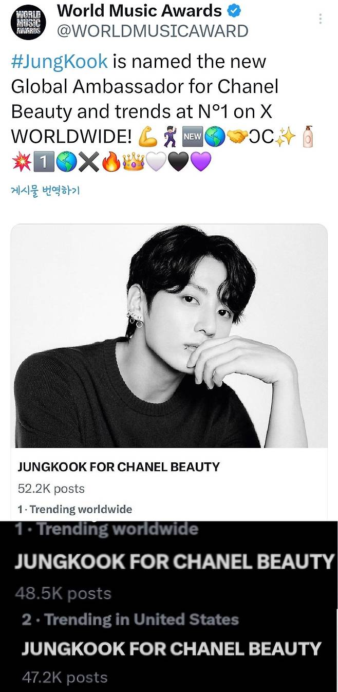 방탄소년단 정국의 샤넬 글로벌 앰버서더 발표가 바로 그 장면을 연출했다.