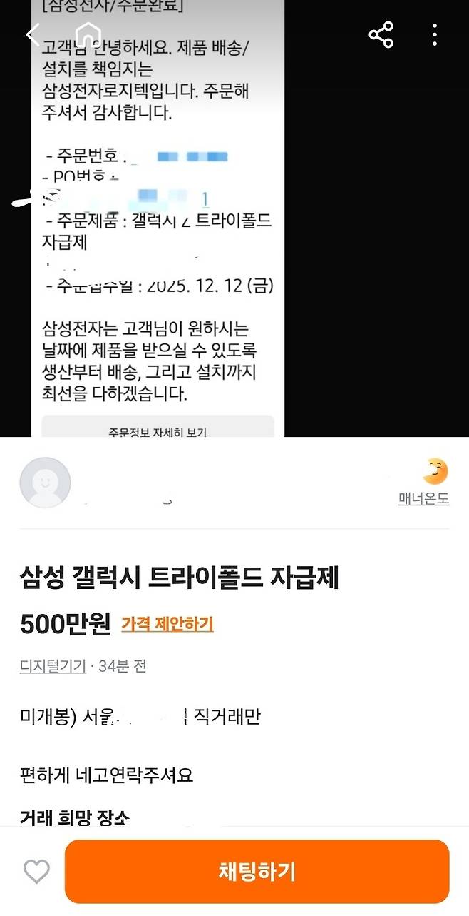 트라이폴드 출시 첫날부터 온라인 매진…리셀가 500만원 등장