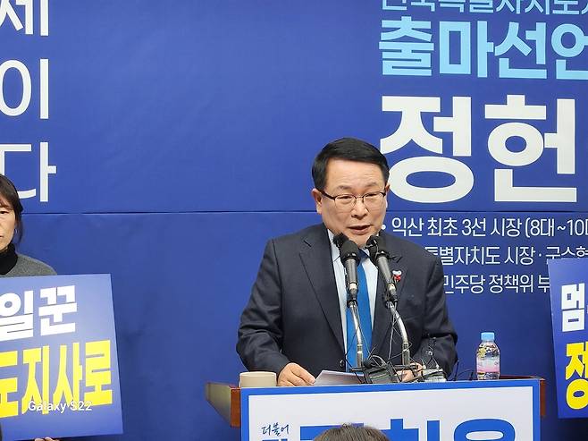 3선의 정헌율 익산시장이 12일 정치인의 시험대 아닌, 책임지고 해답 만드는 도정으로 전환해야한다면서 전북특별도지사 출마를 공식 선언했다.