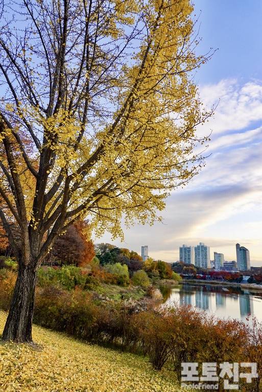 단풍과 은행나무의 강렬한 색감 대비가 인상적입니다.
