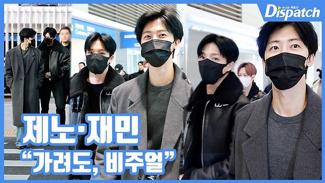이날 제노는 블랙 무스탕으로 시크한 매력을, 재민은 그레이 롱 코트로 세련된 분위기를 더하며 완벽한 투샷 케미를 완성했다.