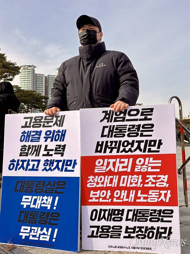 "정부가 공공부문의 모범적 사용자여야 한다는 대통령의 국정철학을 청와대에서 실현하십시오!" - 이우석 공공운수노조 서울지부 청와대분회장