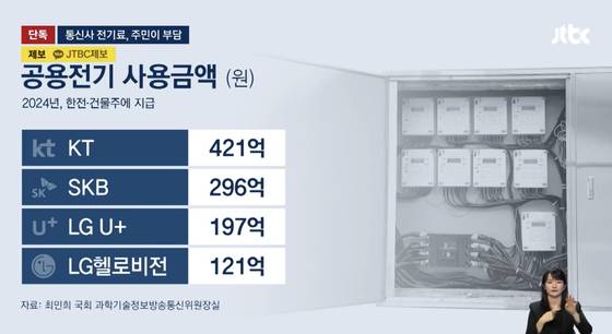 업체들은 해당 건물에 계량기를 설치해 한전에 자동으로 납부하거나, 각 건물에 설치 시 주민들과 '통신설비 설치 및 인입동의서'를 체결해 매달 나가는 전기요금을 정산해줬어야 합니다. 지난해 기준 100억~400억원대 요금이 이렇게 정산됐는데, 어디에서 얼마나 무단으로 사용해왔는지 아직 그 규모도 파악되지 않았습니다.