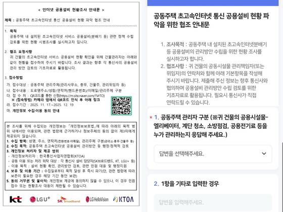아파트나 빌라·상가 등 건물에서 관리비 납부를 맡고 있는 담당자들은 아래 링크를 통해 건물과 인적사항을 입력하면, 각 통신·인터넷사업자 확인을 통해 보상 대상 여부와 규모를 회신받을 수 있습니다.